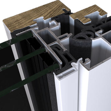 Struttura con la grande robustezza dell'alluminio con il naturale calore del legno.